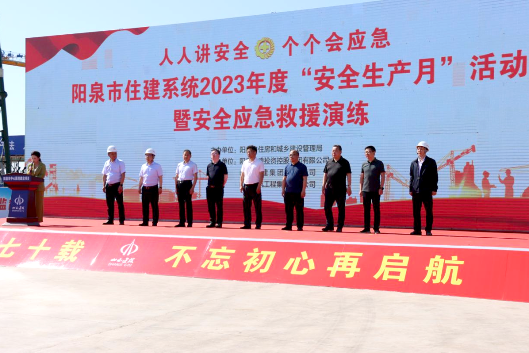 6月8日,阳泉市住建系统2023年度“安全生产月”暨安全应急救援演练活动在建工集团承建的阳泉市中心医院建设项目举行。