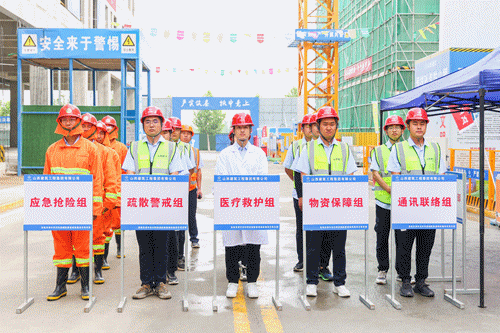 演练开始前,宝坻京津中关村科技城配套基础设施项目全体管理人员进行了安全宣誓,进一步强化了安全意识,明确了安全职责。