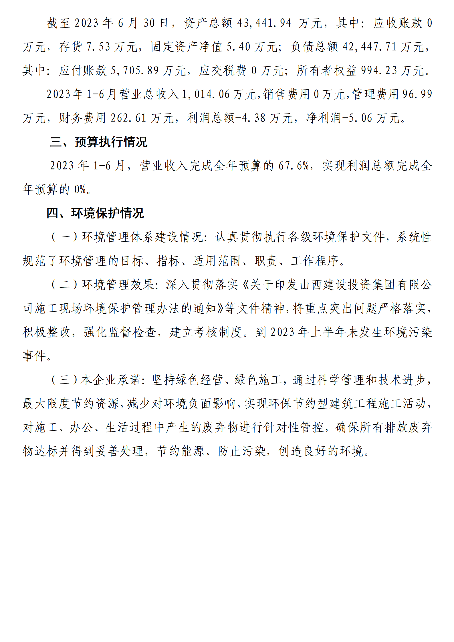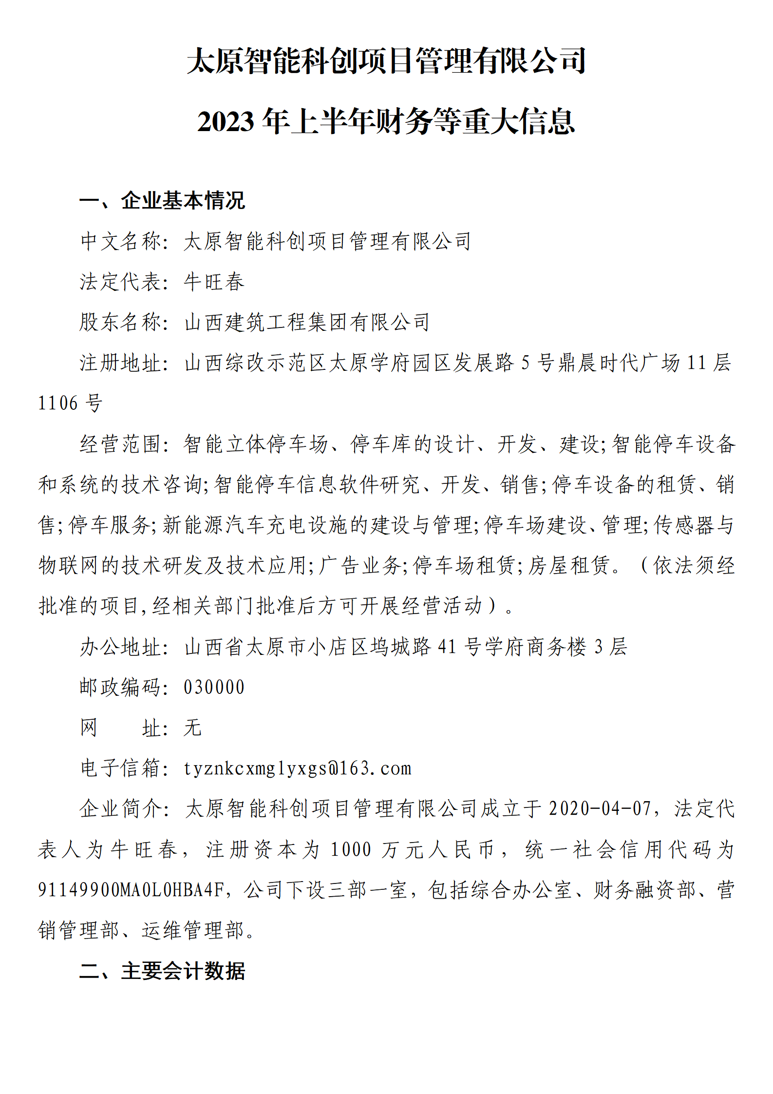 太原智能科创项目管理有限公司2023年上半年财务等重大信息
