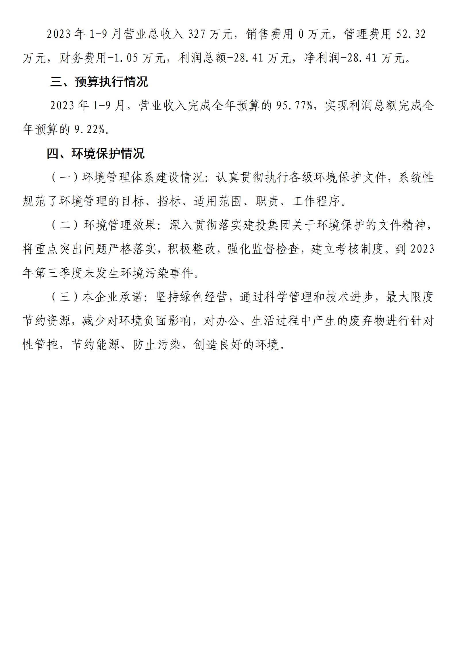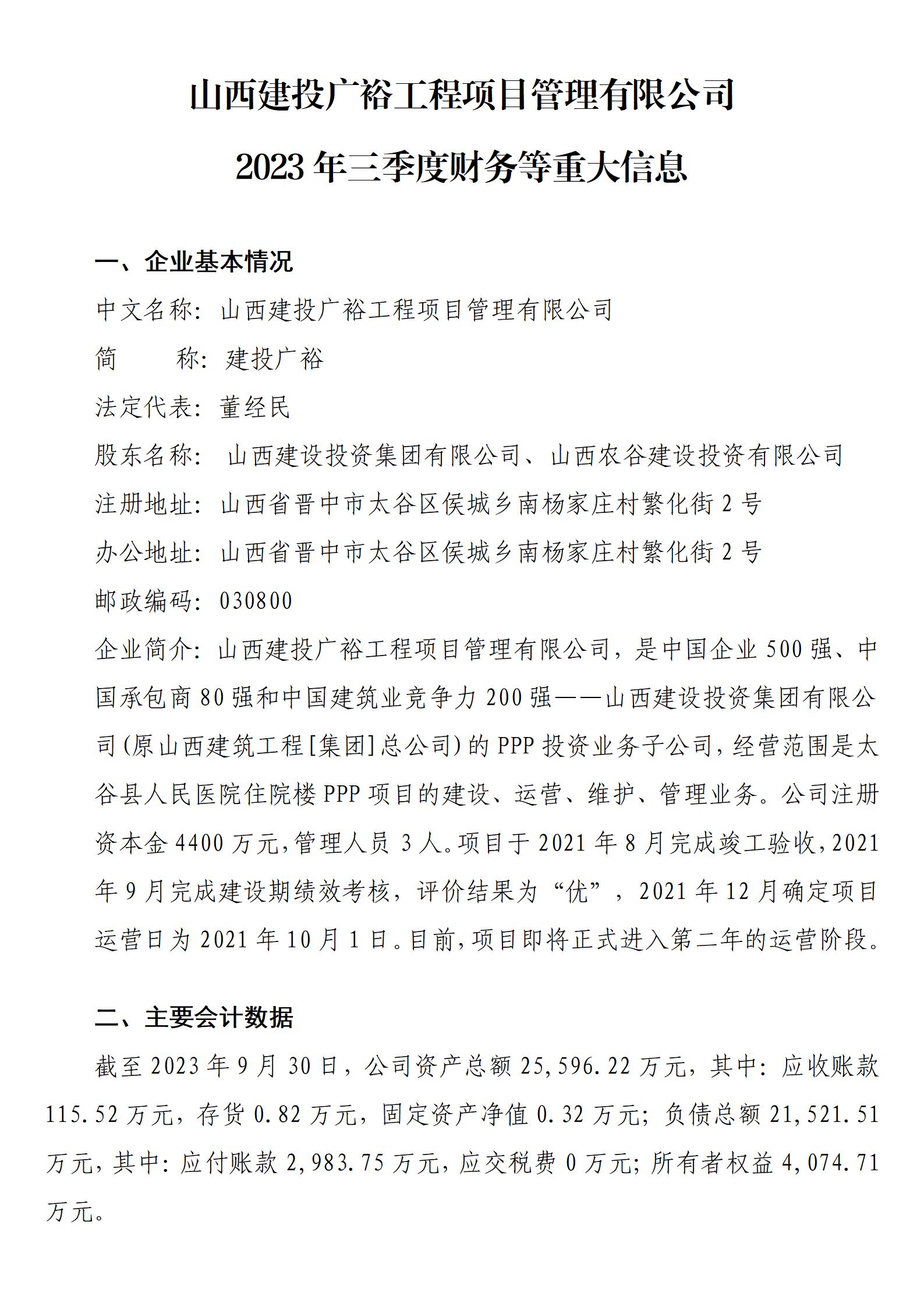 山西建投广裕工程项目管理有限公司2023年三季度财务等重大信息