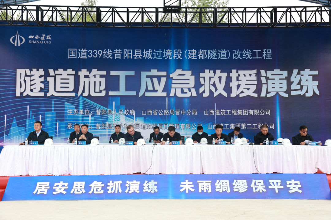 为进一步提高全员应急响应速度,增强多方联动、协同配合和应对突发事件的处置能力,以点带面不断提升项目安全管理水平,5月25日,昔阳县人民政府、山西省公路局晋中分局、山西建投建工集团联合主办国道339线昔阳县城过境段(建都隧道)改线工程隧道施工应急救援演练活动。