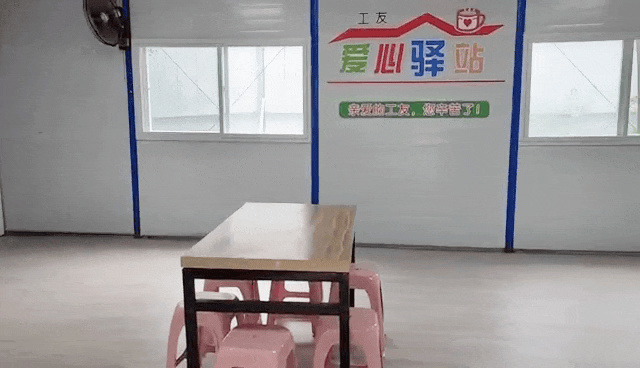 工人生活区建立了“爱心驿站”,安装了饮水设施、电视机等,配备了各类书籍,工友们劳累之余可以歇歇脚、喝杯水,中午闲暇时光可以聊聊天、看看书。“爱心驿站”成为了工地一线的教育阵地和温馨的服务港湾。