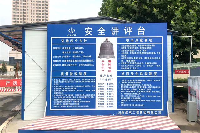 项目部搭建了“安全讲评台”,定期举办安全教育活动,开展安全知识宣讲,帮助项目人员树立“安全第一”的思想。同时,还设置“安全体验馆”,通过VR技术,让大家“亲身体验”事故带来的危害, 正确认识到安全施工的重要性。