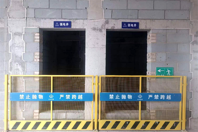 针对施工现场“四口、五临边”,项目部采用统一的定型围栏进行防护,并悬挂安全警示牌,加强临边防护管理。生活区统一采用36V安全电压,并设有工具充电柜,避免了火灾事故的发生。