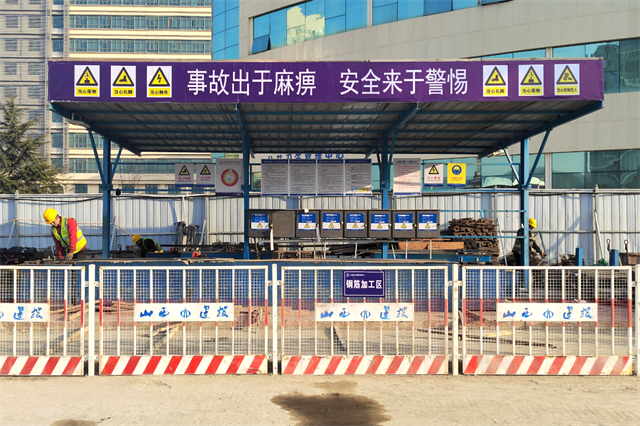 施工现场根据总平面布置图对物料堆放区及各加工区进行科学划分,并使用围挡进行封闭,使现场更加整洁有序。