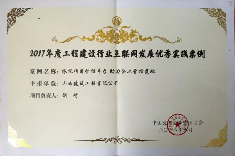 6月14日,由中国施工企业管理协会组织的“第四届工程建设行业互联网大会”在杭州召开,山西建筑工程有限公司申报的项目管理系统被评审为“2017年度工程建设行业互联网发展优秀实践案例”。同时,公司加入了由中国施工企业管理协会发起的“中国工程建设企业互联网联盟”。