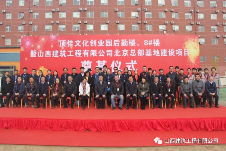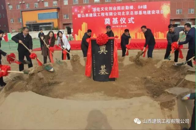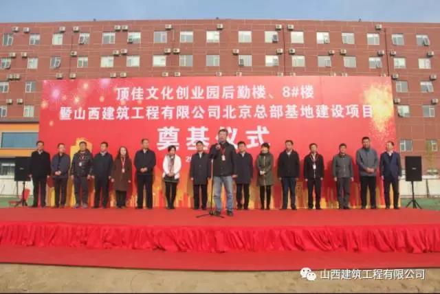 11月12日上午10点30分,顶佳文化创业园后勤楼、8#楼暨山西建筑工程有限公司北京总部基地建设项目奠基仪式在北京市大兴区顶佳文化创业园隆重举行。