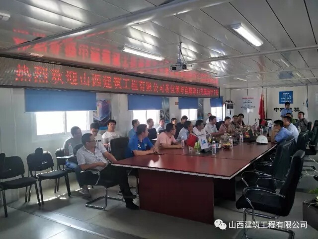 会上,双方在项目会议室举行了对标学习座谈会,山西二建常青藤项目部负责人对工程情况、创新点及亮点做了介绍。会上就“三种模板体系”、“智能信息化综合管理”、“BIM技术应用”、“组合式钢结构大车间”、“安全及现场标准化”、“质量创优”、“绿色施工”、“材料集中管控”、“劳务规范管理”、“才良模式”进行相互交流、相互学习。