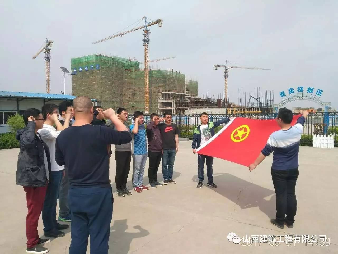 在祁县208项目部,团支部组织青年员工重温了入团誓词,团支部书记为项目部全体团员佩戴了团徽,带领团员青年一起合唱《光荣啊,中国共青团》;在忻州大剧院项目,团小组组织青年团员重温了入团誓词,举行了配带团徽、唱团歌等仪式,并安排了近郊踏青活动。(冯媛媛)