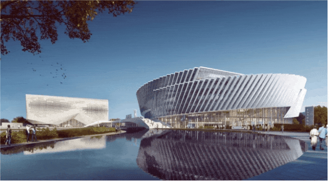 长治市文化场馆建设项目图书馆、档案馆钢结构工程,位于长治市主城区西侧北寨片区,东临长北干线,南临太行西街,是长治市重点民生工程及地标性建筑,项目结构为错位双螺旋空间管桁架结构,由四个相似的屋面和立面组成,各体系之间既独立又相互关联,屋面弓形区域弦长113.65m,弧长达156m,矢高为1.5m,由65榀垂直桁架及水平联系杆件组成,内侧上部屋面桁架支撑于主体结构混凝土牛腿,外侧下部窗桁架支撑于腰桁架上,立面结构由互成折线形的桁架柱、腰桁架、窗桁架、肩桁架结构组成。