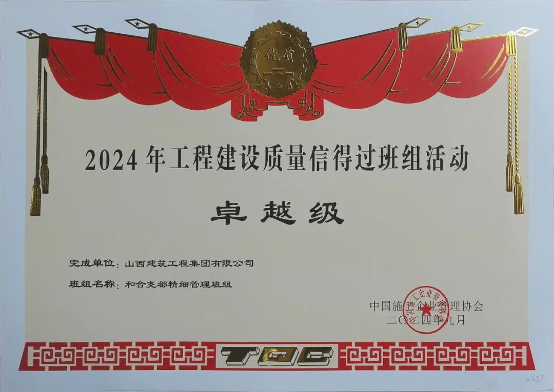 同期,中国施工企业管理协会“2024年工程建设质量信得过班组活动经验交流会”在博鳌召开。山西建工西北公司和·合尧都精细管理班组荣获“卓越级”质量信得过班组1项、“最佳发布奖”1项。
