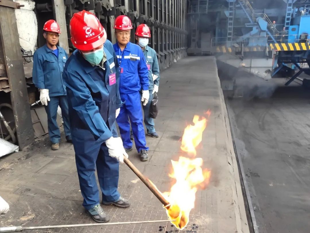 云南煤业能源股份有限公司常务副总经理周春宏率先点燃第一道燃烧室的烘炉煤气管,随后师宗煤焦化工有限公司总经理余晖、山西建筑工程集团有限公司三分公司云南师宗项目负责人初命俊及现场执行项目经理杨建时相继点燃其余燃烧室的烘炉煤气管。