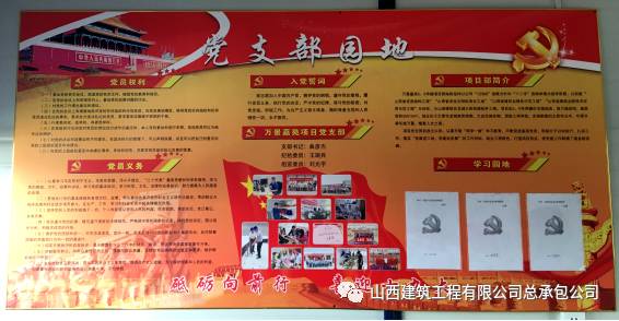 项目党支部自成立以来一直与项目建设同频共振,目标同向。在工作中相互协调,相互促进,共同发展。项目党支部按照公司企业文化手册对项目现场进行了策划,并全程监督使文化建设真正落到实处。