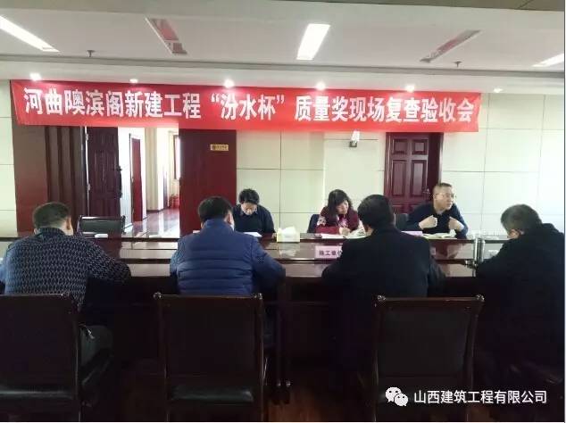 在11月24日通过“省优”复查的基础上,12月9日至10日,由山西省建筑业协会工程质量专业委员会组织有关专家组成检查组对大同分公司承建的河曲隩滨阁新建工程进行“汾水杯”质量奖现场复验。
