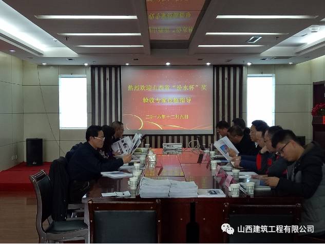 “汾水杯”汇报会和讲评会在会议室举行,山西省建筑业协会的领导及专家杨少华、芦瑞玲、刘志伟一行听取了汇报、进行了现场和资料的检验、对工程进行了整体评价和存在问题的点评,公司总工程师朱忠厚、技术管理部庞军辉、白少华、大同分公司主任工程师张锦林、项目工程师王俊峰等参加,朱忠厚代表公司进行了汇报。