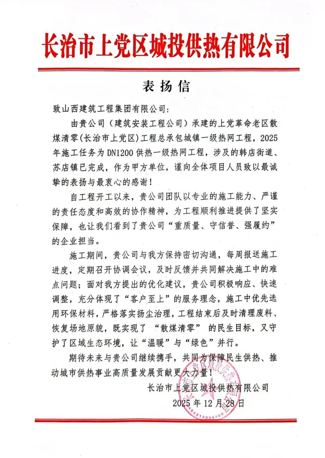 岁序更替,华章日新。2025年,山西建投建工集团建筑安装工程公司紧扣集团公司“挖潜增效年”工作部署,以“品牌建安、幸福建安、人文建安”特色文化为指引,连续七年获评“成熟类公司”,揽获集团公司“先进单位”“诚信经营优胜杯”“质量管理优胜杯”,武宿机场项目获评集团公司“先进项目”;王莽岭旅游区基础设施改造项目获“2025年度中国市政工程最高质量评价”,静乐县污水净化中心项目获评“山西省市政公用行业精品示范工程”,高质量完成省医新院区项目鲁班奖现场复查、名汇广场项目国优奖现场复查。全年授权发明专利4项、实用新型专利12项,获批企业级工法3项,斩获省建设科技三等创新成果等多项科创荣誉,硬核实力彰显品牌底蕴。