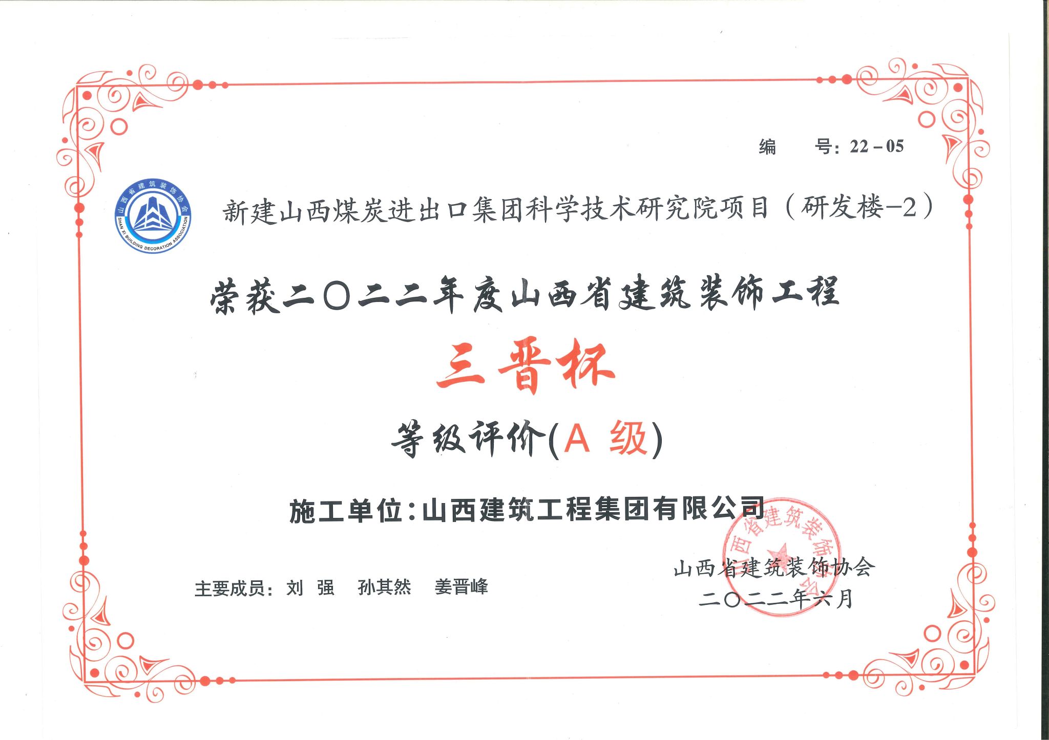 三晋杯等级评价A级-新建山西煤炭进出口集团科学技术研究院项目(研发楼-2)(内装)