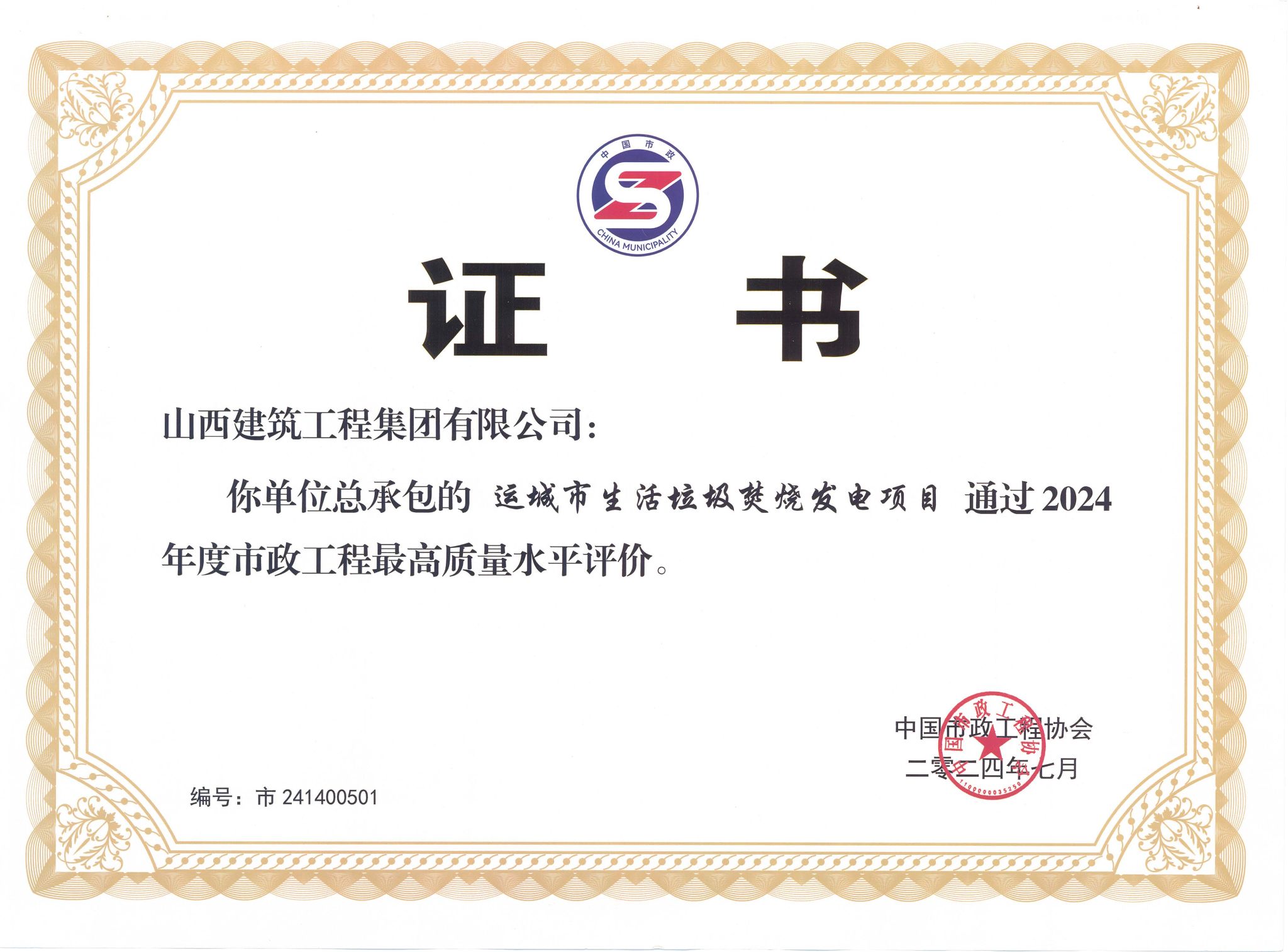 中国市政工程最高质量水平西北公司运城市生活垃圾焚烧发电项目