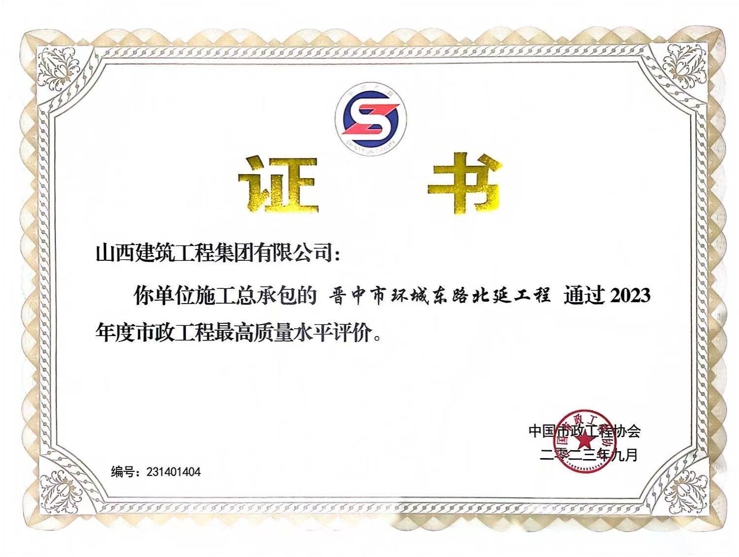 中国市政工程最高质量水平市政工程公司晋中市环城东路北延工程