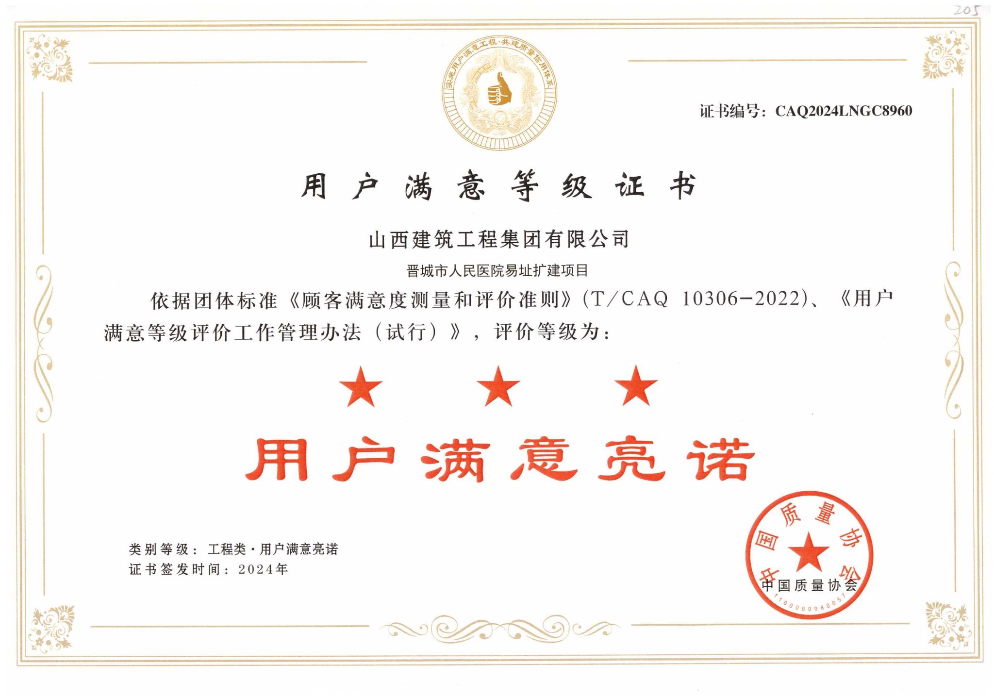 三星级用户满意亮诺第五工程公司晋城市人民医院易址扩建项目