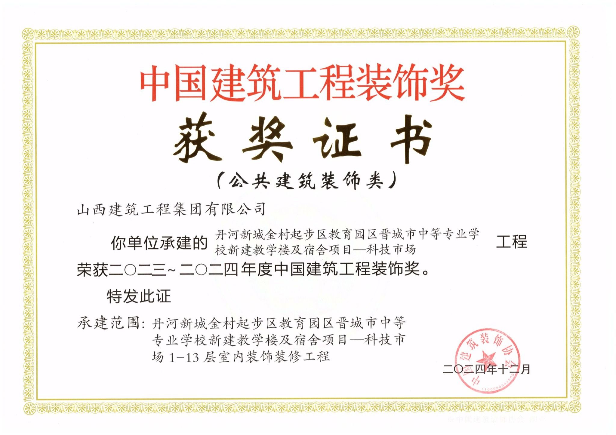中国建筑装饰奖-第四工程公司丹河新城金村起步区教育园区晋城市中等专业学校新建教学楼及宿舍项目-科技市场