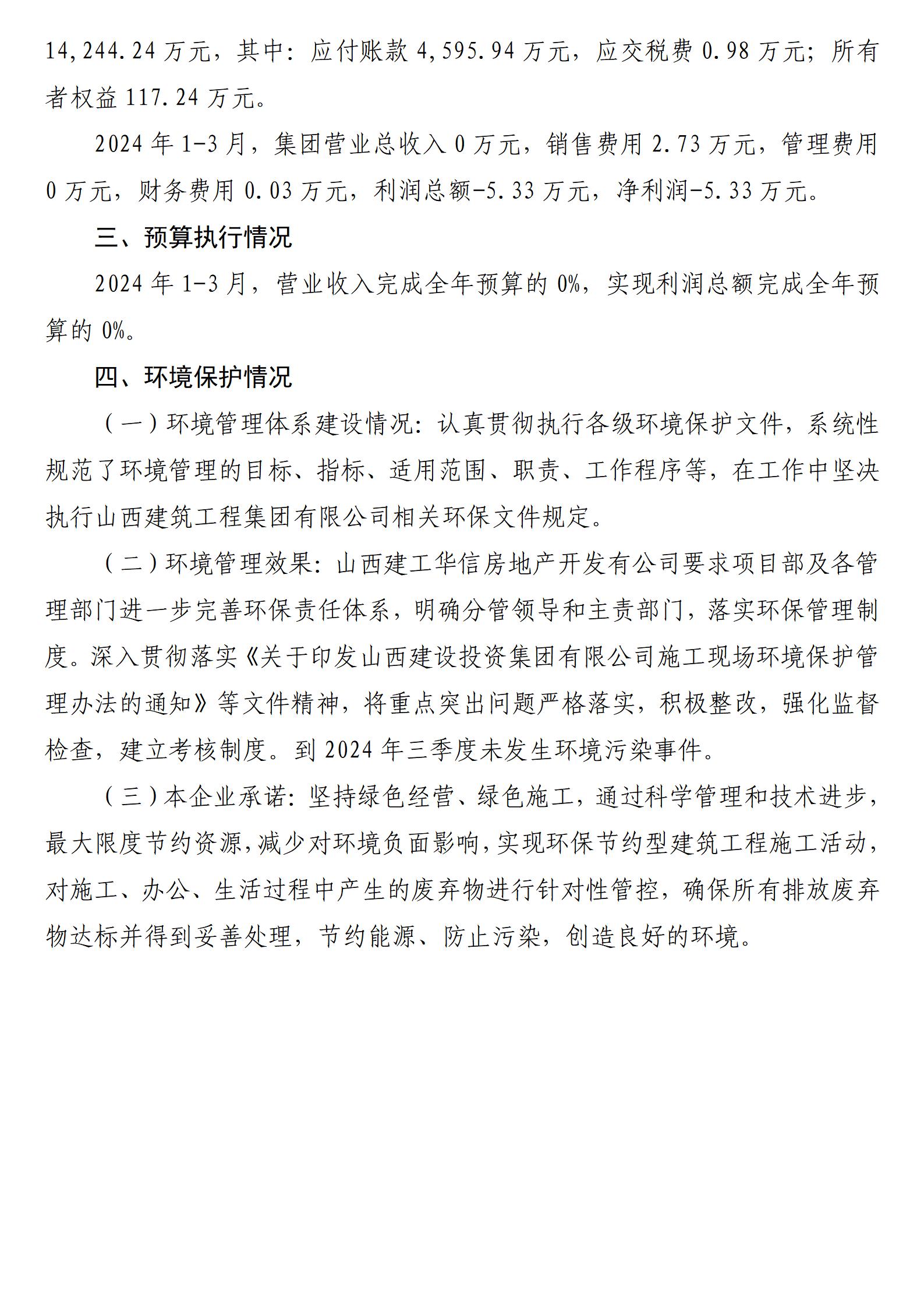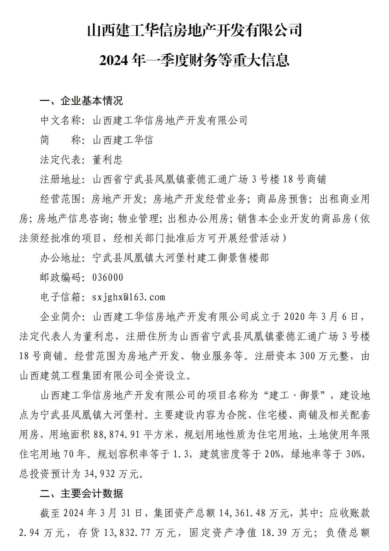 山西建工华信房地产开发有限公司2024年一季度财务等重大信息