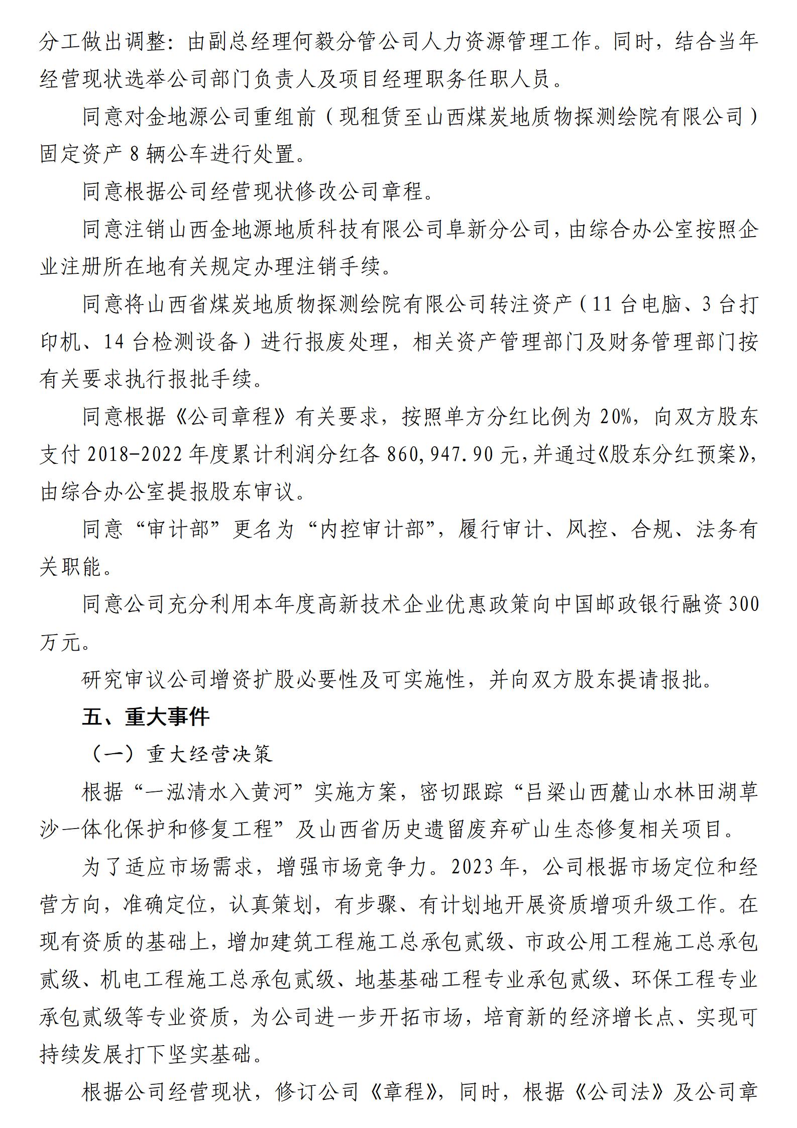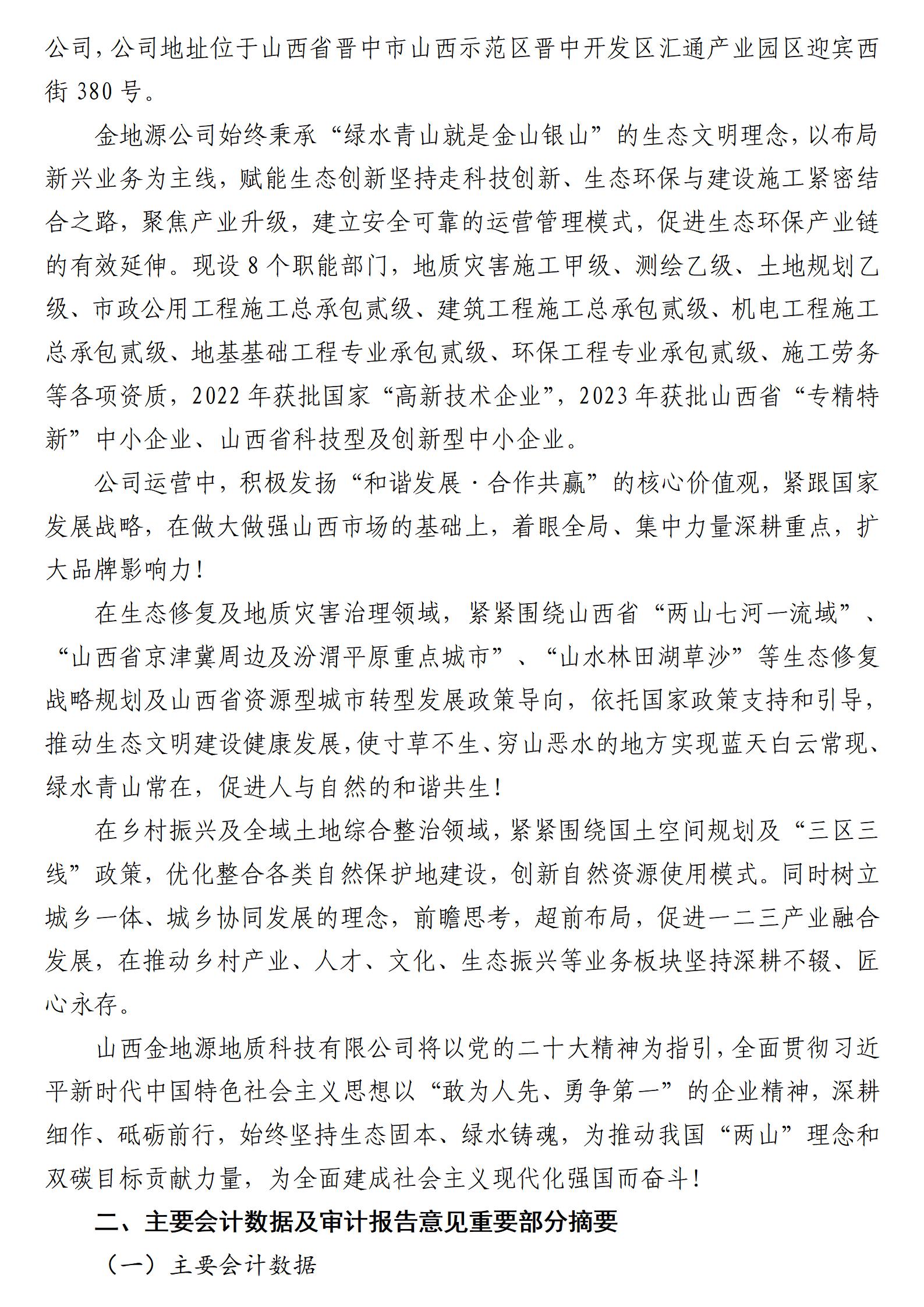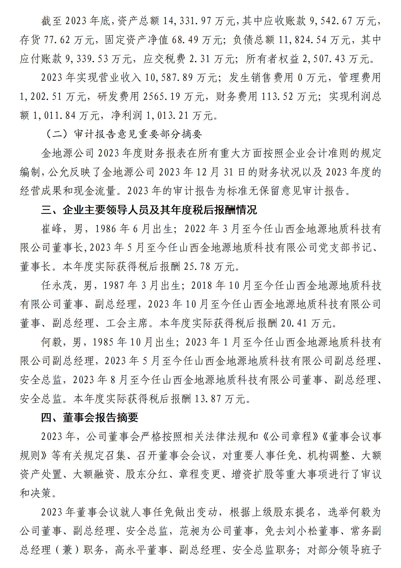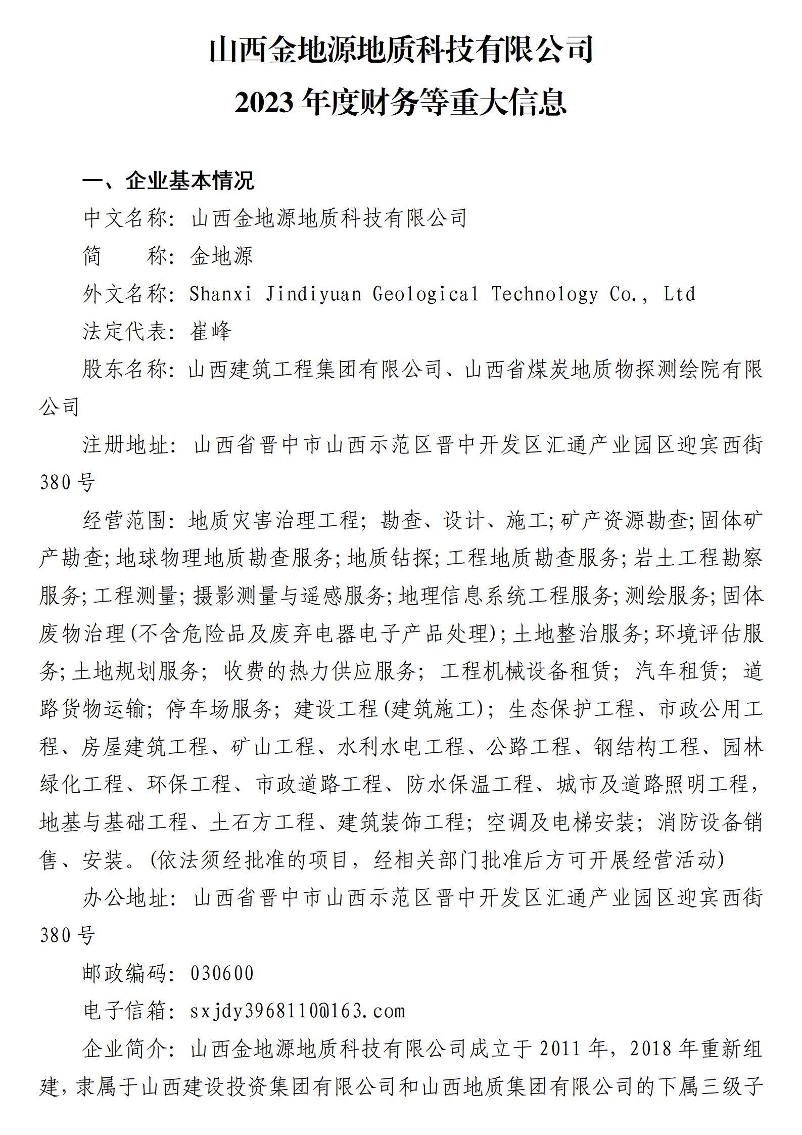 山西金地源地质科技有限公司2023年度财务等重大信息