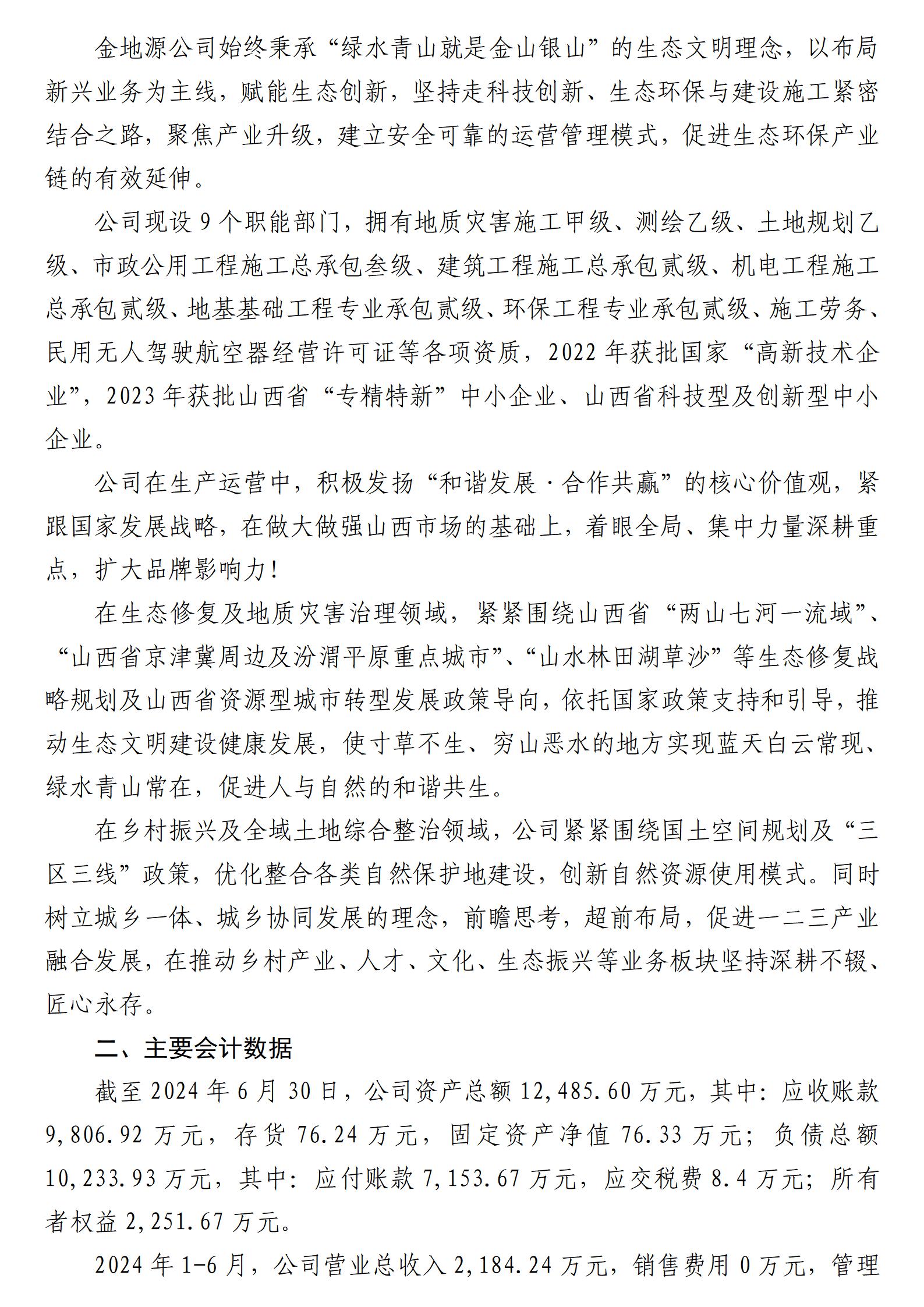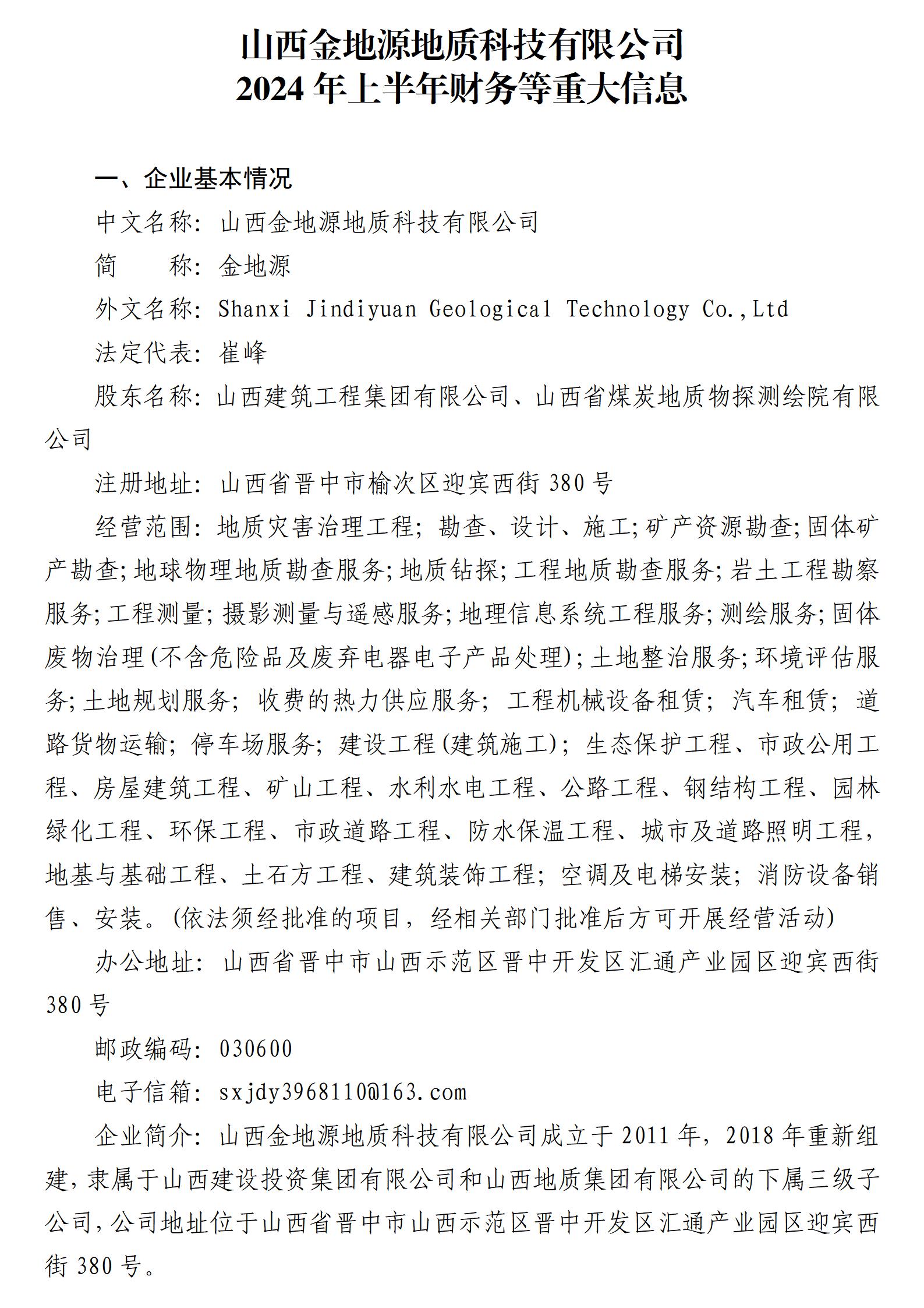 山西金地源地质科技有限公司2024年上半年财务等重大信息